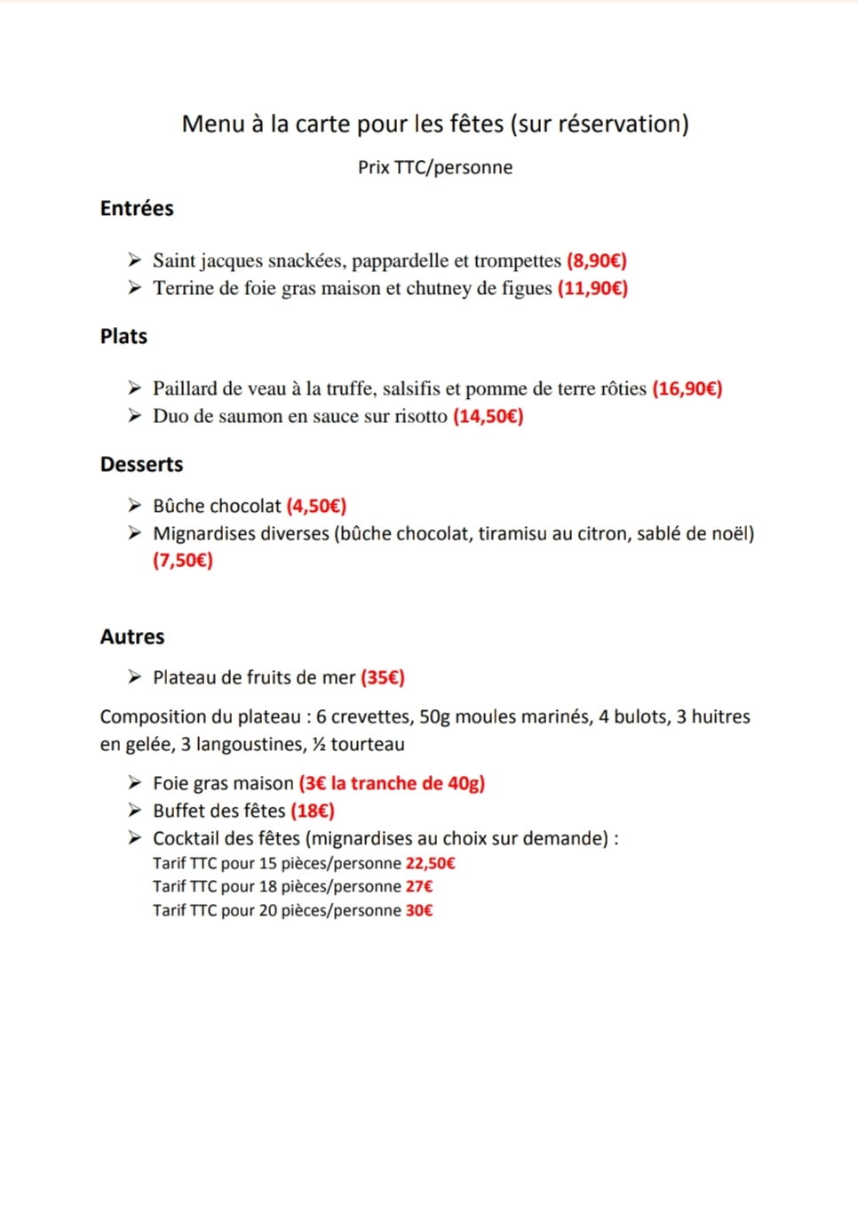 Nous proposons des plats traiteurs en livraison à réchauffer à la maison ainsi que  des produits de première nécessite (œufs, farine, sucre, pain...) uniquement les midis et sur commande 48h avant.